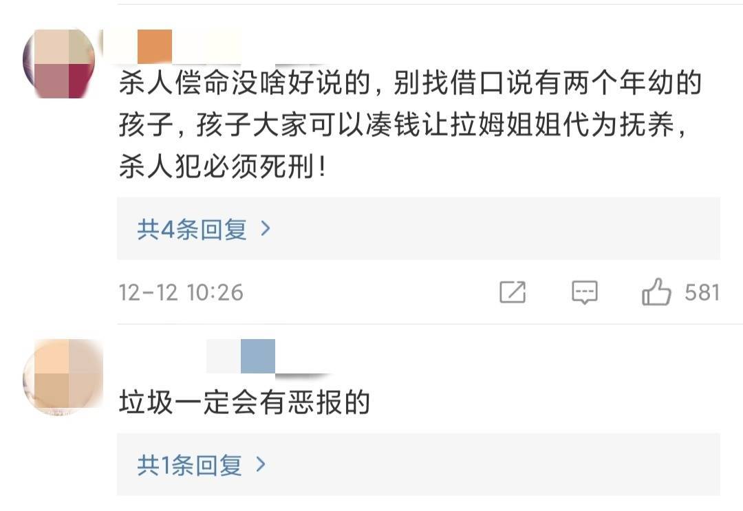 在拉姆短视频平台账号最新一条的视频下,有网友留言,“我市刷到新闻才认识了你。哎,希望你的孩子以后都要好好的。”虽有两个未成年的孩子需要抚养,但网友“花小旦旦”表示,嫌疑人还是理应受到法律的严惩,年幼的孩子,大家可以凑钱让拉姆的姐姐代为抚养。