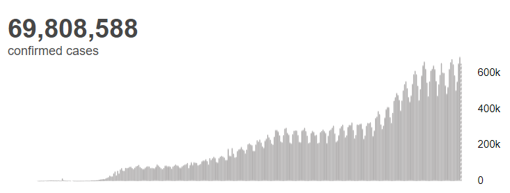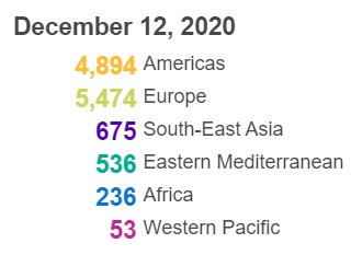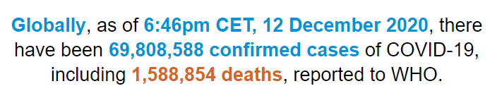 根据世卫组织最新实时统计数据,截至欧洲中部时间12月12日18时46分(北京时间12月13日1时46分),全球累计新冠肺炎确诊病例69808588例,累计死亡病例1588854例。12日全球新冠肺炎确诊病例新增656181例,死亡病例新增11868例。(总台记者 朱赫)