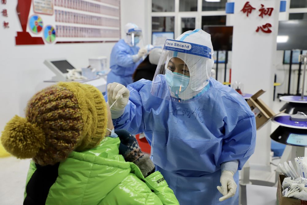 新华社哈尔滨12月12日电(记者董宝森、徐凯鑫)“采样必须要做到稳、准,不浪费每一秒。”医护人员何磊磊熟练地进行咽拭子采样,并准确快速地将其封存。何磊磊是牡丹江市中医医院儿医科护理组组长,为配合绥芬河市完成全民核酸检测任务,她与同事10日到达绥芬河。