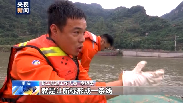 长江航道工作人员 李柜梁:库区(蓄水)形成后水势平稳,航标容易乱摆动发生漂移,所以我们设置尾锚的目的,就是让航标形成一条线,不会随意摆动,便于我们监控平台监测到实时的动态。