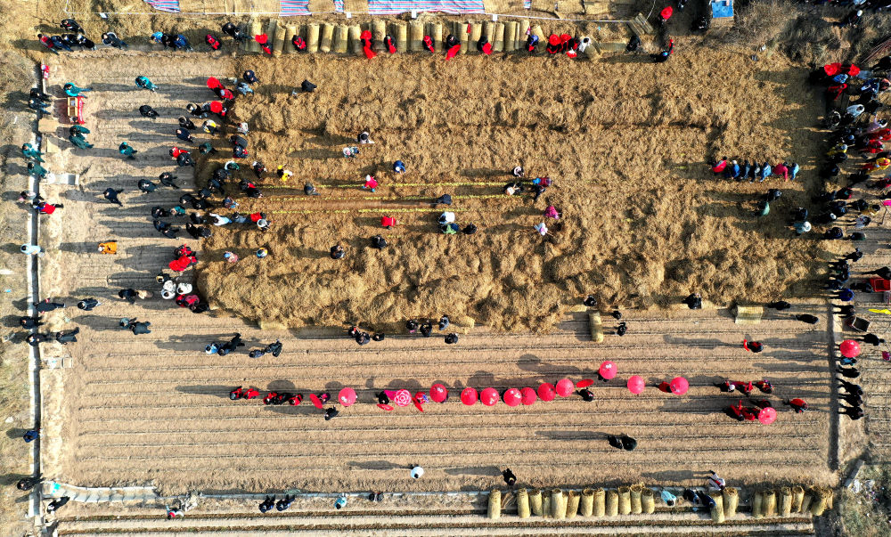 ↑这是12月12日拍摄的西固区第三届“韭黄开镰丰收节”活动现场(无人机照片)。