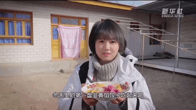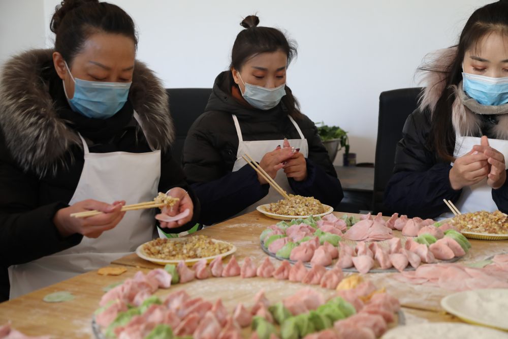 ↑12月12日,张家大坪村村民在包韭黄馅饺子。