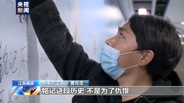 外来务工人员 曹先生:我老家是河南的,铭记这段历史,不是为了仇恨,而是为了以后不让侵略者再去危害全世界的人民。