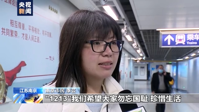 南京市民 季芸:我们是南苑街道鹭鸣社区的居民,“1213”我们希望大家勿忘国耻,珍惜生活。
