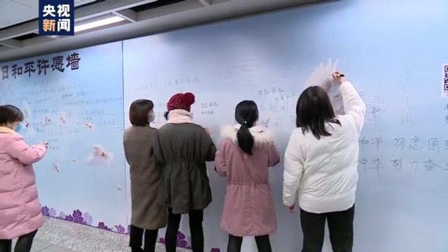 今天是国家公祭日。在江苏南京,多个地铁站点内都设立了“和平许愿墙”。