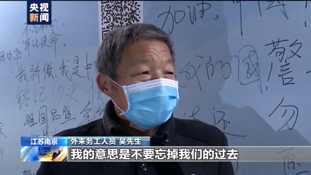 外来务工人员 吴先生:我在南京打工搞土建的、搞建筑的,我的意思是不要忘掉我们的过去。
