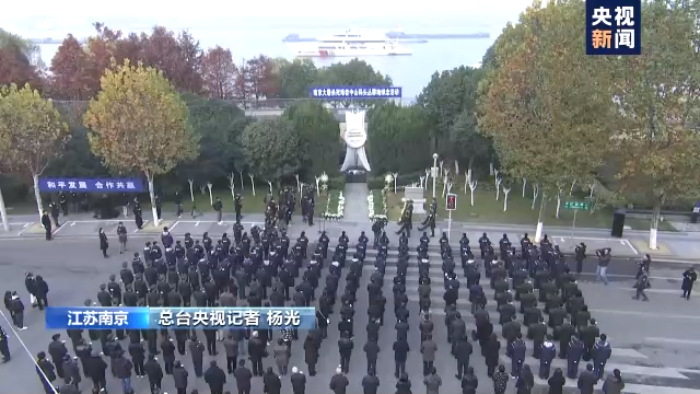 警报拉响,车船齐鸣,肃立默哀。就在10时01分的时候,在南京城的17个侵华日军南京大屠杀死难同胞丛葬地都同步举行了悼念仪式。这些丛葬地都是当年侵华日军开展集中屠杀和死难者遗骸掩埋的场所。来自南京市鼓楼区的中小学生,企事业单位,政府工作人员和附近百姓近200人在位于长江边的中山码头丛葬地开展悼念活动。