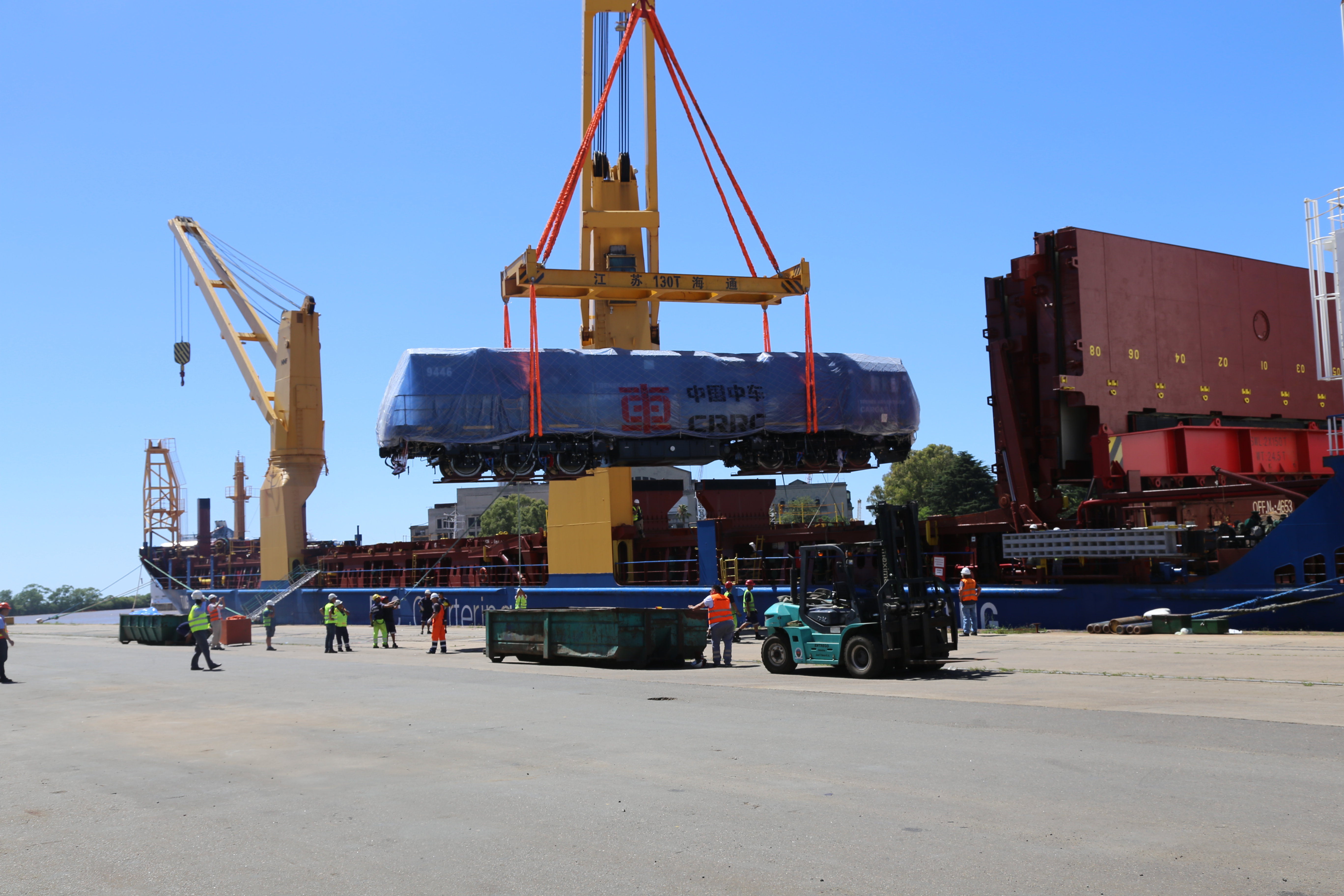 2018年1月3日,由中国机械设备工程股份有限公司和中国中车集团联合研发的货运列车抵达阿根廷布宜诺斯艾利斯港。近年来,在阿根廷,中车制造的各种轨距、各种制式、各种型号的铁路机车、动车组、客车、货车和地铁列车密集交付。(新华社记者倪瑞捷摄)