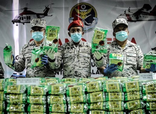 据悉,此次拦截行动起获的130个大麻袋里装有1998包用“观音王”茶袋包装的冰毒。毒品重量总计2118公斤,总值105900000林吉特。此外,该机构还在行动中起获价值15万林吉特的游艇。