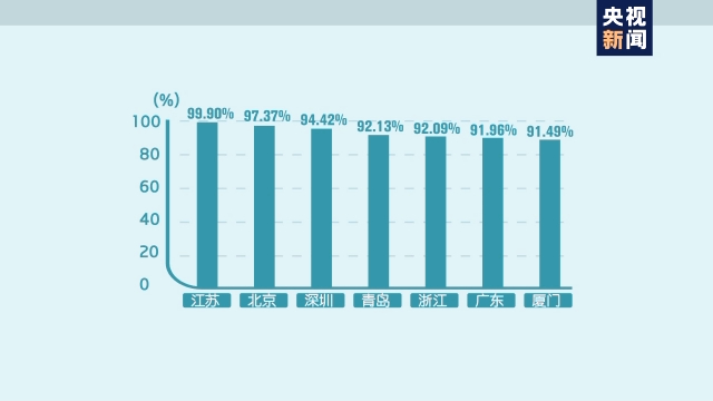 分地区来看,主要涉税业务中,江苏(99.90%)、北京(97.37%)、深圳(94.42%)、青岛(92.13%)、浙江(92.09%)、广东(91.96%)、厦门(91.49%)等7个省区市,“非接触式”办税缴费比例超过90%。