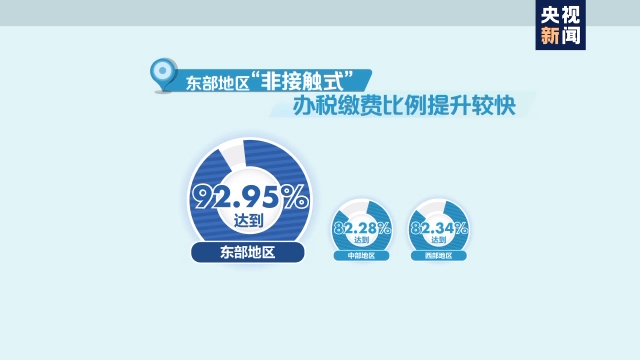 分区域来看,主要涉税业务中,东部地区“非接触式”办税缴费比例提升较快,达到92.95%(中西部比例82.28%、82.34%),其中,长三角地区高出全国(87.51%)6.41个百分点,粤港澳大湾区(不含港、澳)高出全国4.45个百分点,京津冀地区高出全国3.74个百分点。