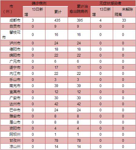 四川各市(州)确诊病例及无症状感染者情况表
