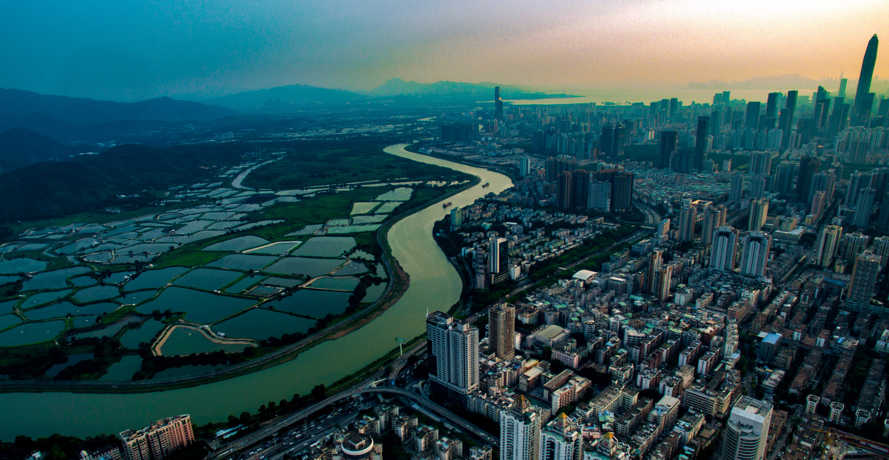 无人机拍摄的深圳和香港落马洲河套地区及周边风光(2018年5月23日摄)(新华社记者毛思倩摄)