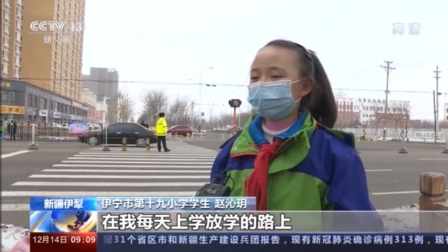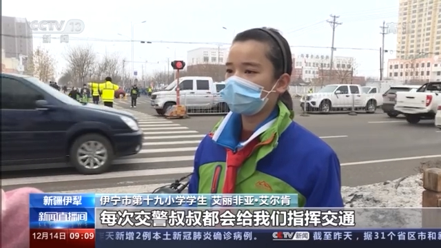 伊宁市第十九小学学生 艾丽非亚·艾尔肯: 我们每天上学放学都会路过这个马路,每次交警叔叔都会给我们指挥交通,每次我们都会跟他击掌,想要感谢一下他。