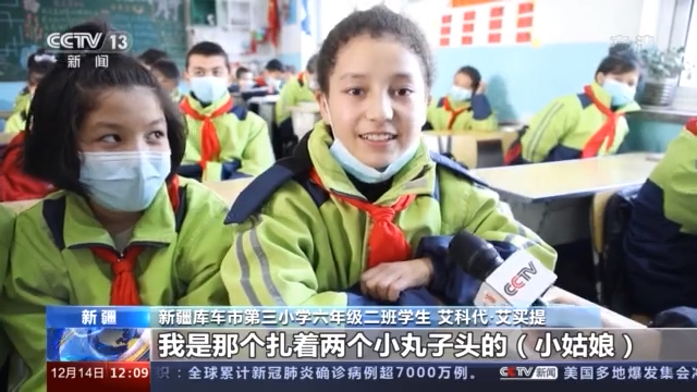 学生 艾科代·艾买提:大家好,我是那个扎着两个小丸子头的,我的名字是艾克待艾买提。你们都说我长得挺可爱的,所以给大家露个脸。