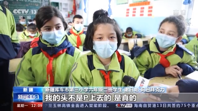 学生 谢日帕·阿巴拜克力:网友们说我的头是P上去的。我想给大家说,我的头不是P上去的,是真的。我叫谢日帕·阿巴拜克力。
