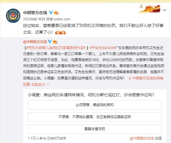 据公安部新闻中心官方微博消息,经核实,广东东莞网约车司机为救突发疾病婴儿连闯三个红灯,此前交警对其的处罚被取消。