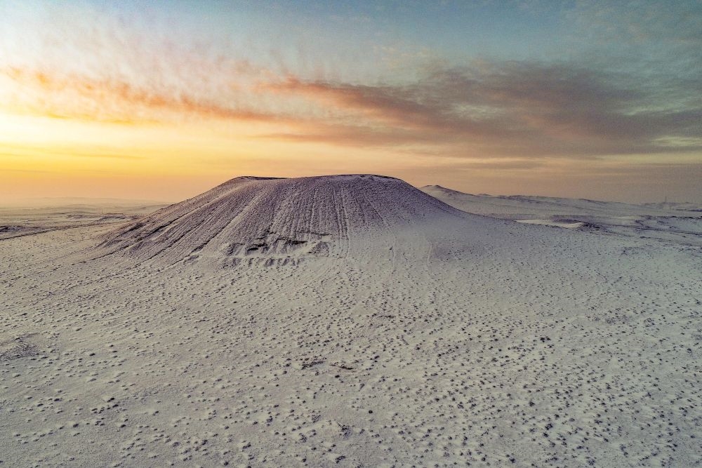 ↑这是内蒙古自治区察哈尔火山景色(11月28日摄,无人机照片)。新华社发(王正 摄)