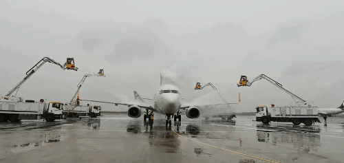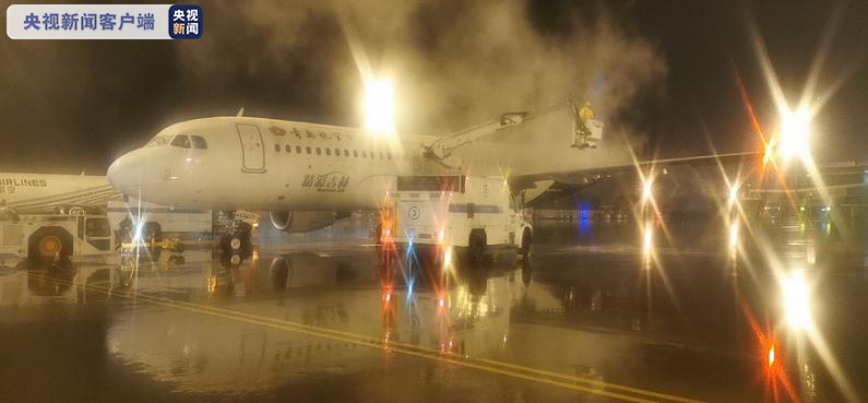 上午9时,机场启动除冰雪应急预案四级响应,调集11台除冰车,6台机坪小型除雪车、7台场道热吹车、1台冷吹车对原机位、西南站坪进行除冰,并实时对跑道摩擦系数进行测试;同时启动大面积航班延误响应蓝色等级。