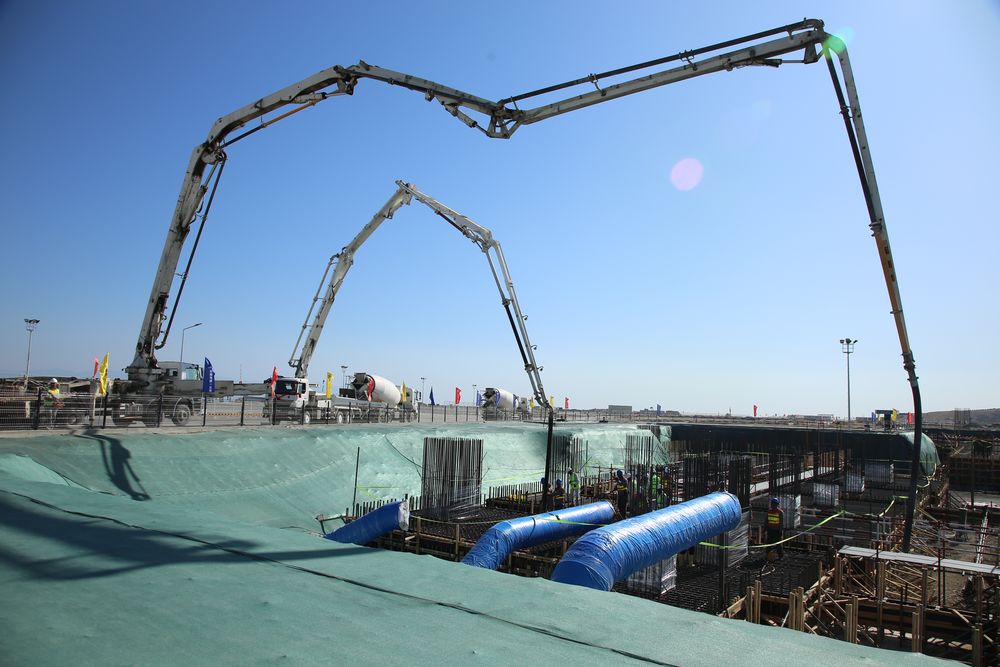 2019年9月22日,中国在土耳其的最大直接投资项目胡努特鲁电厂在土南部阿达纳省正式开工。这是项目主厂房浇筑混凝土作业现场。(新华社记者郑思远摄)