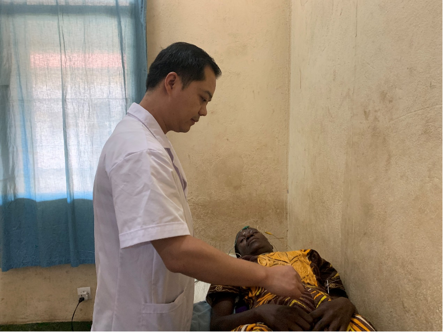 杨利是医疗队唯一的针灸医师。出国前,他一度担心“中国方子”能不能在非洲奏效。