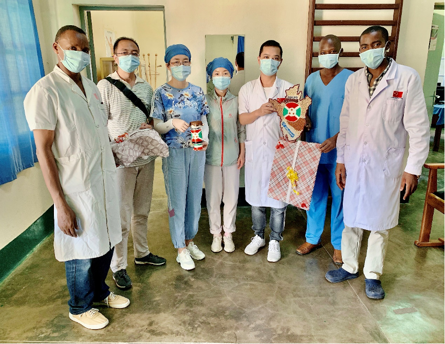 5月15日,医疗队员们收到布隆迪布琼布拉大王子医院康复医学科送来的礼物。(医疗队供图)