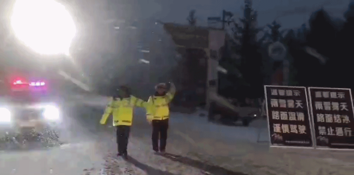 12月13日晚,244国道太白境内、212省道秦岭段等部分地区开始出现因雨雪天气路面结冰后,宝鸡太白、高新、凤县、监管等大队交警全警上路,加强路面指挥疏导,通过警车巡逻喊话、警灯警报警示、电子屏提示等措施,提醒驾驶人安全驾驶。