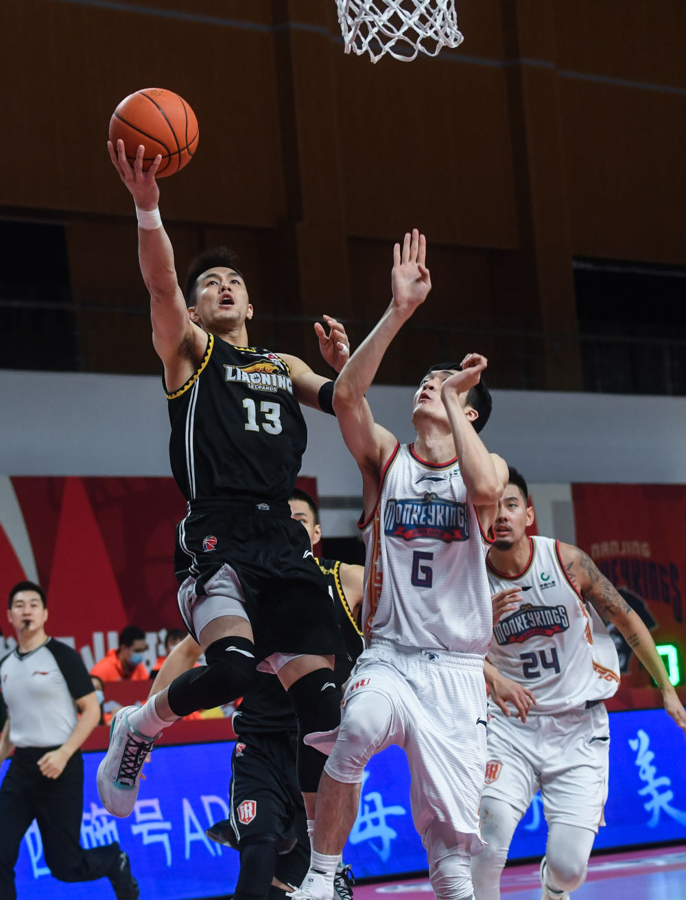 辽宁本钢队球员郭艾伦(左)在比赛中。新华社记者徐昱摄