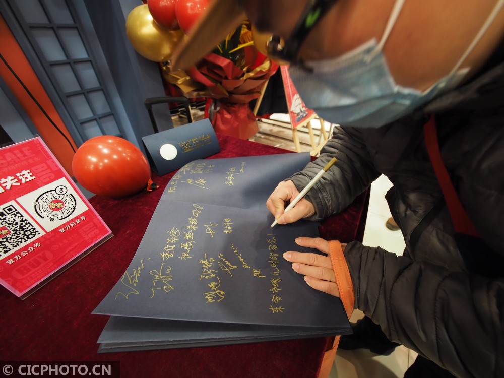 ↑2020年12月11日,顾客在北京东安市场留言簿上写下祝福语。CICPHOTO/杜建坡 摄