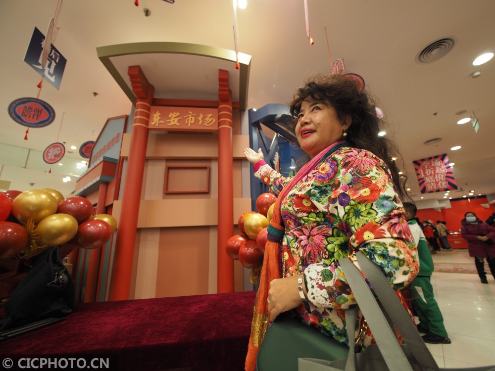↑2020年12月11日,顾客在北京东安市场拍照留影。CICPHOTO/杜建坡 摄
