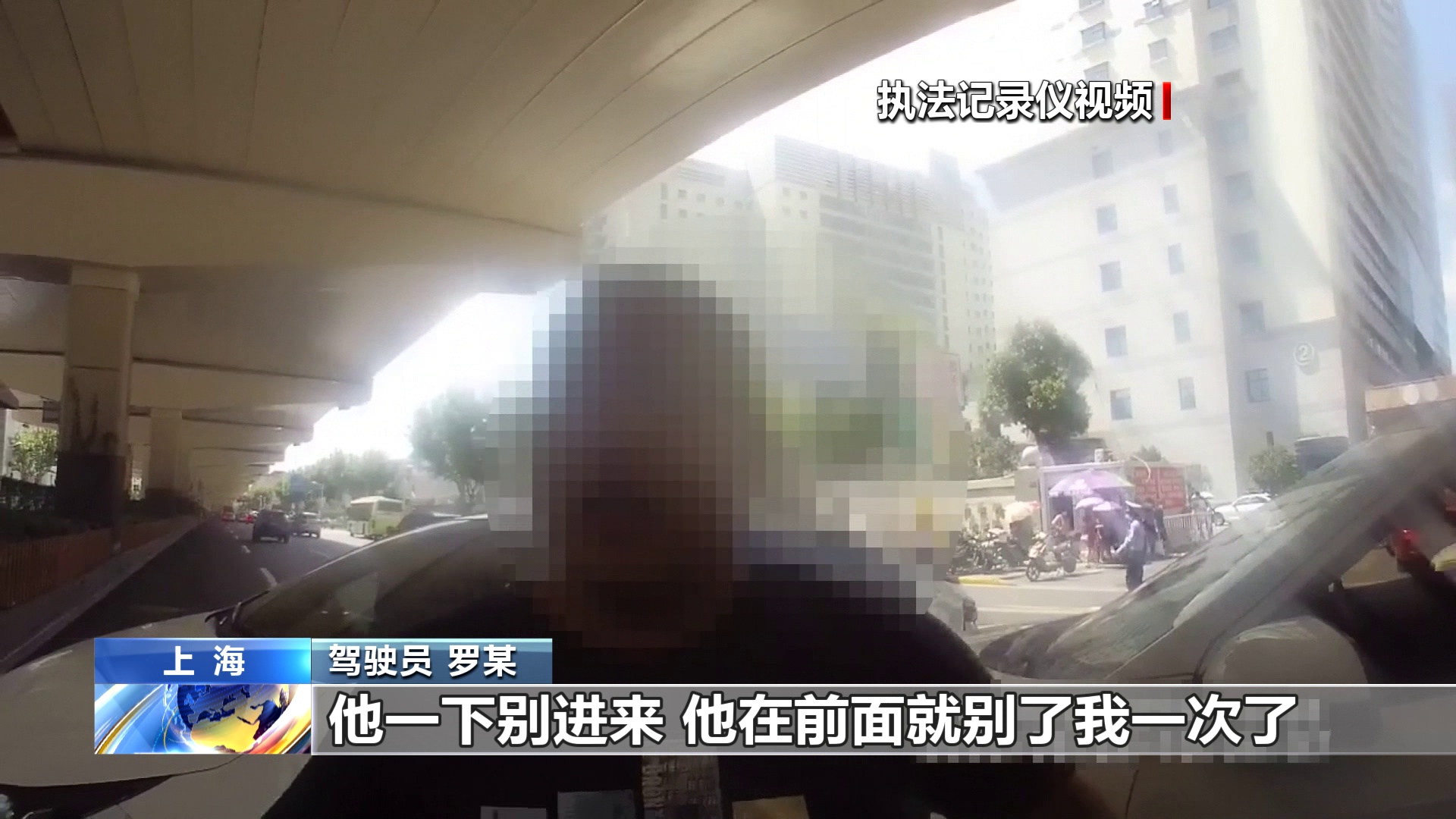 静安公安分局交警支队民警 韩树钢: 高架上面两车道并一车道的时候,有一个交替通行的原则,当时罗某在直行车道,他误以为张某是一个加塞的行为。