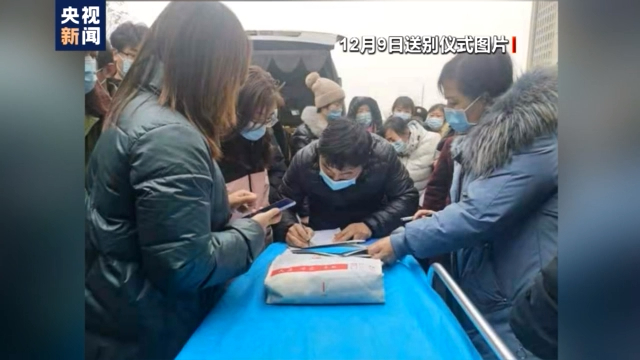 12月9日10时,在乐陵市红十字会的见证和协调下,乐陵市人民医院为周岩坤举行了简短的告别仪式,现场30多名工作人员及亲友,为周岩坤送行。