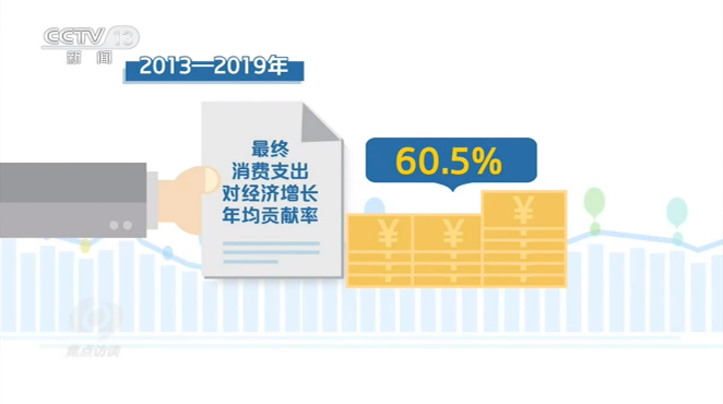 我国有14亿人口和当今世界规模最大的中等收入群体,消费潜力巨大。2013—2019年,最终消费支出对经济增长年均贡献率为60.5%,连续多年成为中国经济增长的第一动力。