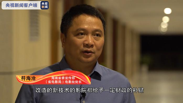 海南省委宣传部(省电影局)电影处处长 符海沧:我们在2018年首届电影节期间就向社会公布了,最新电影院扶持的政策,就是说对新电影院改建的、改造新技术的影院都给予一定财政的补贴,三年下来我们就增加了36家影院,目前海南省有IMAX的影院至少有10家,去年我们还建成了能支撑世界上最先进放映技术的120帧4K的巨幕影院,这个也是目前世界上最先进的放映技术。