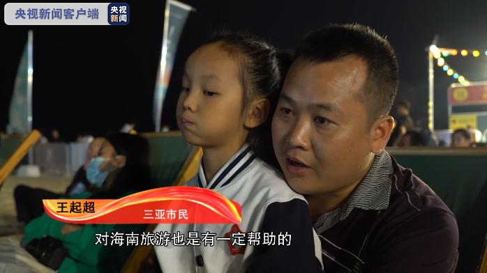 三亚市民 王起超:去年也来过”沙滩放映”,主要是在周末,带小孩出来看一看,海南岛国际电影节也挺有名的,对海南旅游也是有一定帮助的。