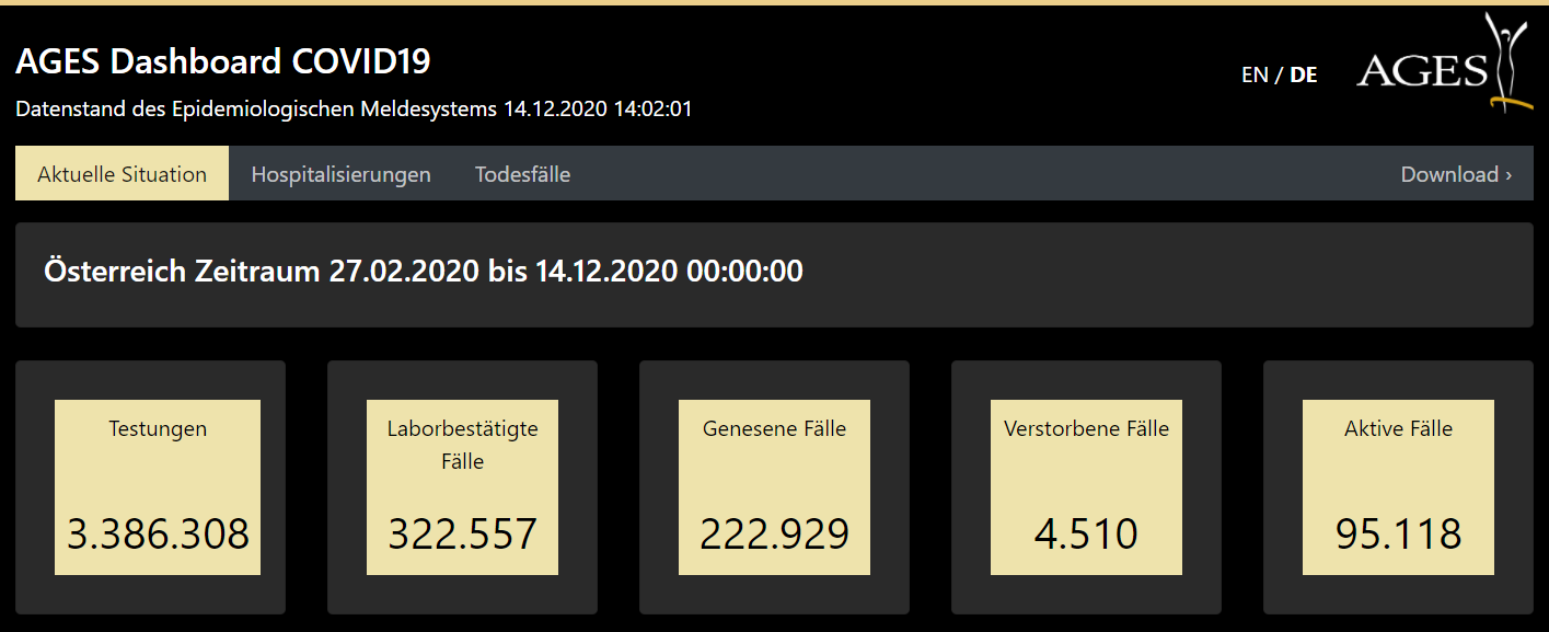 当地时间12月14日14时,奥地利卫生部数据显示,过去24小时该国新增新冠肺炎确诊病例2521例,累计确诊322557例;新增死亡病例110例,累计死亡4510例;累计治愈222929例。