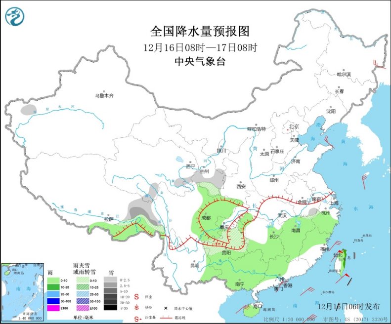 今天,南方的雨雪将开始减少、减弱,不过像是湖南长沙等地仍将可能出现雨夹雪天气。具体来看,西北地区东南部、贵州中北部、江南西南部、新疆南疆西部以及西藏东部等地部分地区有小到中雪或雨夹雪。江南中东部、四川盆地、云南东部、华南大部等地部分地区有小雨,局地中雨(10~20毫米)。