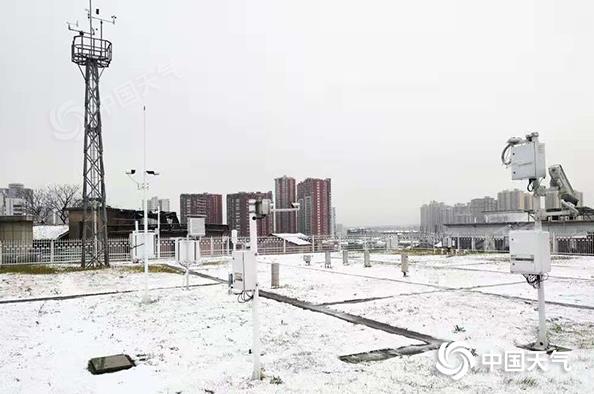 昨天,长沙宁乡雪花飘洒,宁乡市气象局观测场出现积雪。 (图/陈向晖)