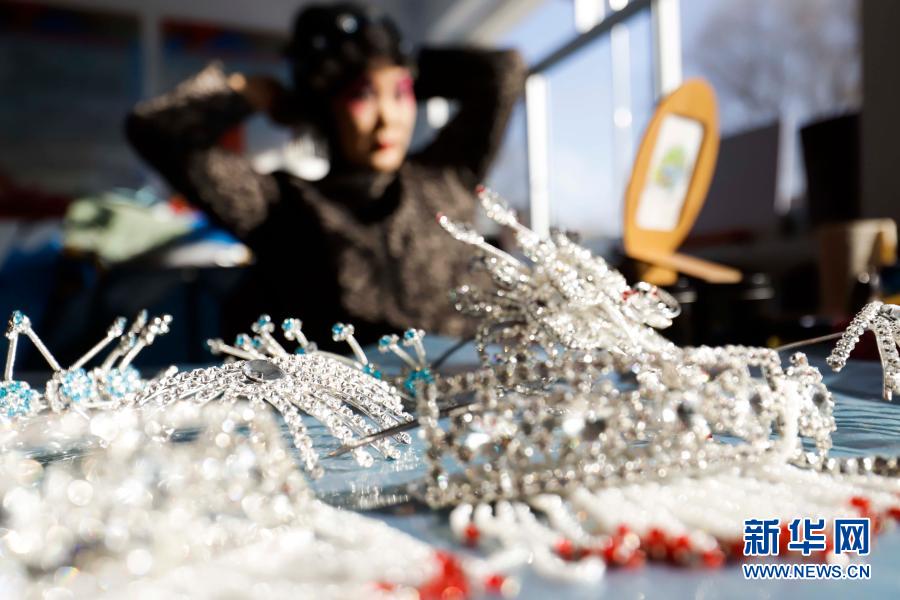 12月14日,在遵化市东旧寨镇东旧寨村,演员在演出前进行妆扮。