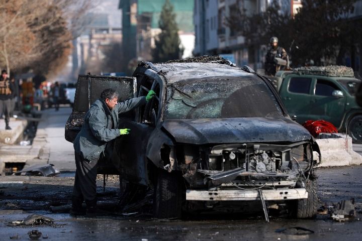 12月13日,一名安全人员在阿富汗喀布尔爆炸现场检查。阿富汗警方13日证实,当天在首都喀布尔发生一起袭击议员车辆的爆炸事件,造成2人死亡、2人受伤,议员本人因不在车上幸免于难。新华社/美联