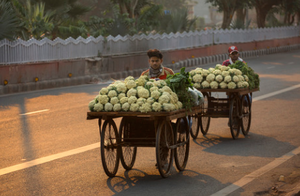 图为11月2日,印度新德里的商贩售卖蔬菜