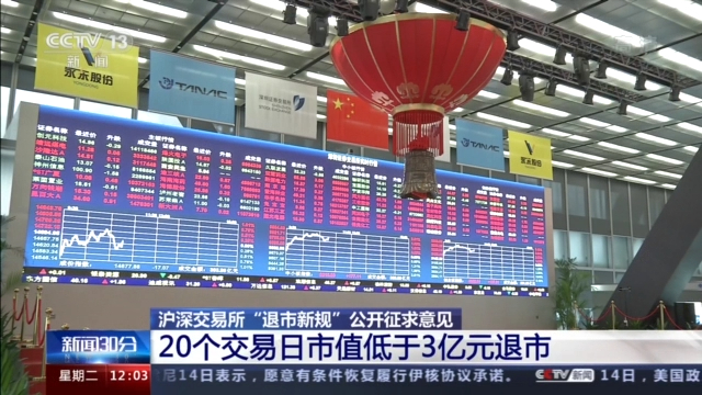 退市流程方面,取消暂停上市和恢复上市。将退市整理期交易时间由30个交易日缩短为15个交易日。一年触及财务指标要求,将被冠以ST标识等。(总台央视记者 沙千)