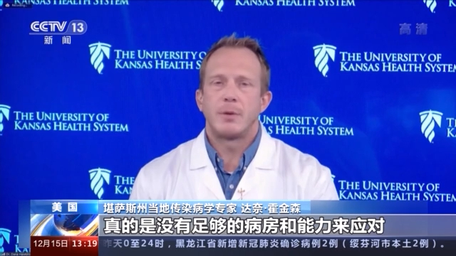 堪萨斯州当地传染病学专家 达奈·霍金森:我们是受疫情影响严重的区域,但是医疗资源却不足,真的是没有足够的病房和能力来应对。