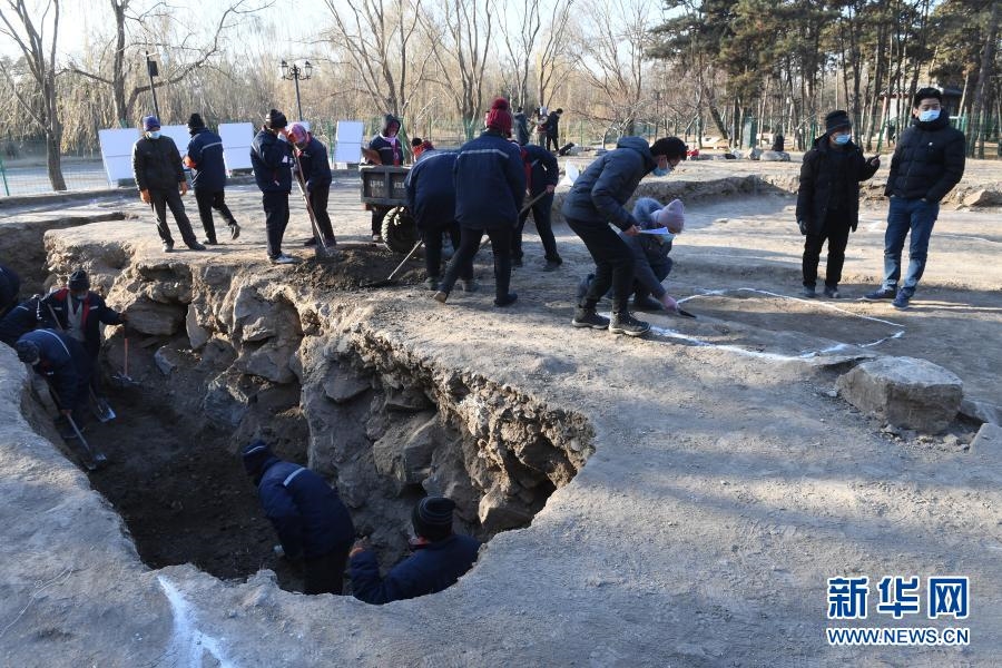 12月15日,工作人员在圆明园澹泊宁静遗址考古现场工作。