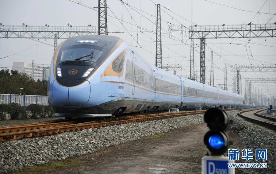 12月15日,CR300BF型“复兴号”动车组抵达中国铁路西安局集团有限公司西安动车段。