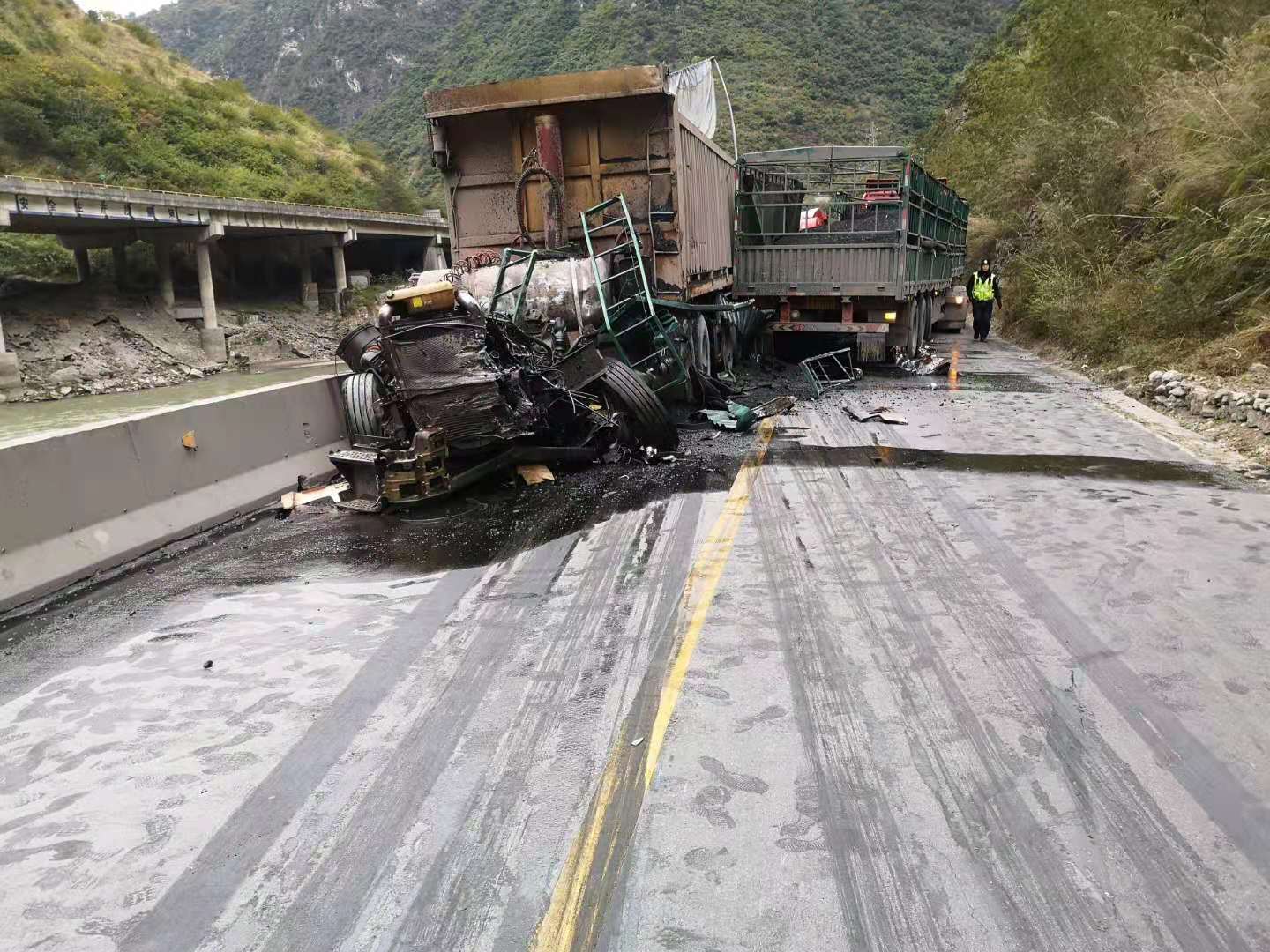昨天(12月14日)下午,在云南昭通大关县大关河电站附近,发生一起两车惨烈相撞的交通事故,一货车头被撞飞后冲下河道,1人受伤被困,大关县公安局交警大队接警后,迅速组织人员进行营救。