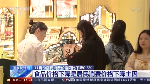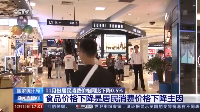 今年以来,居民消费价格的涨幅整体上是前高后低,11月份居民消费价格同比下降0.5%,这也是2009年10月份以来第一次出现同比下降,在今天(15日)举行的国新办新闻发布会上,国家统计局新闻发言人付凌晖表示,从结构上来看,今年11月份居民消费价格同比下降主要是由于食品价格下降所导致的。