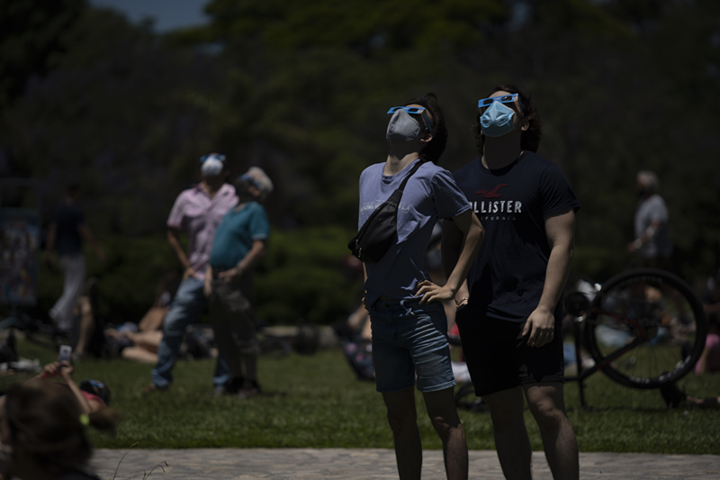 12月14日,阿根廷首都布宜诺斯艾利斯市民观测日偏食。新华社发