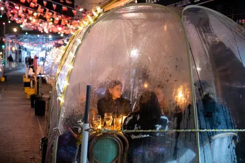 12月14日,在美国纽约,人们在一家餐厅的室外就餐区就餐。新华社发(郭克摄)