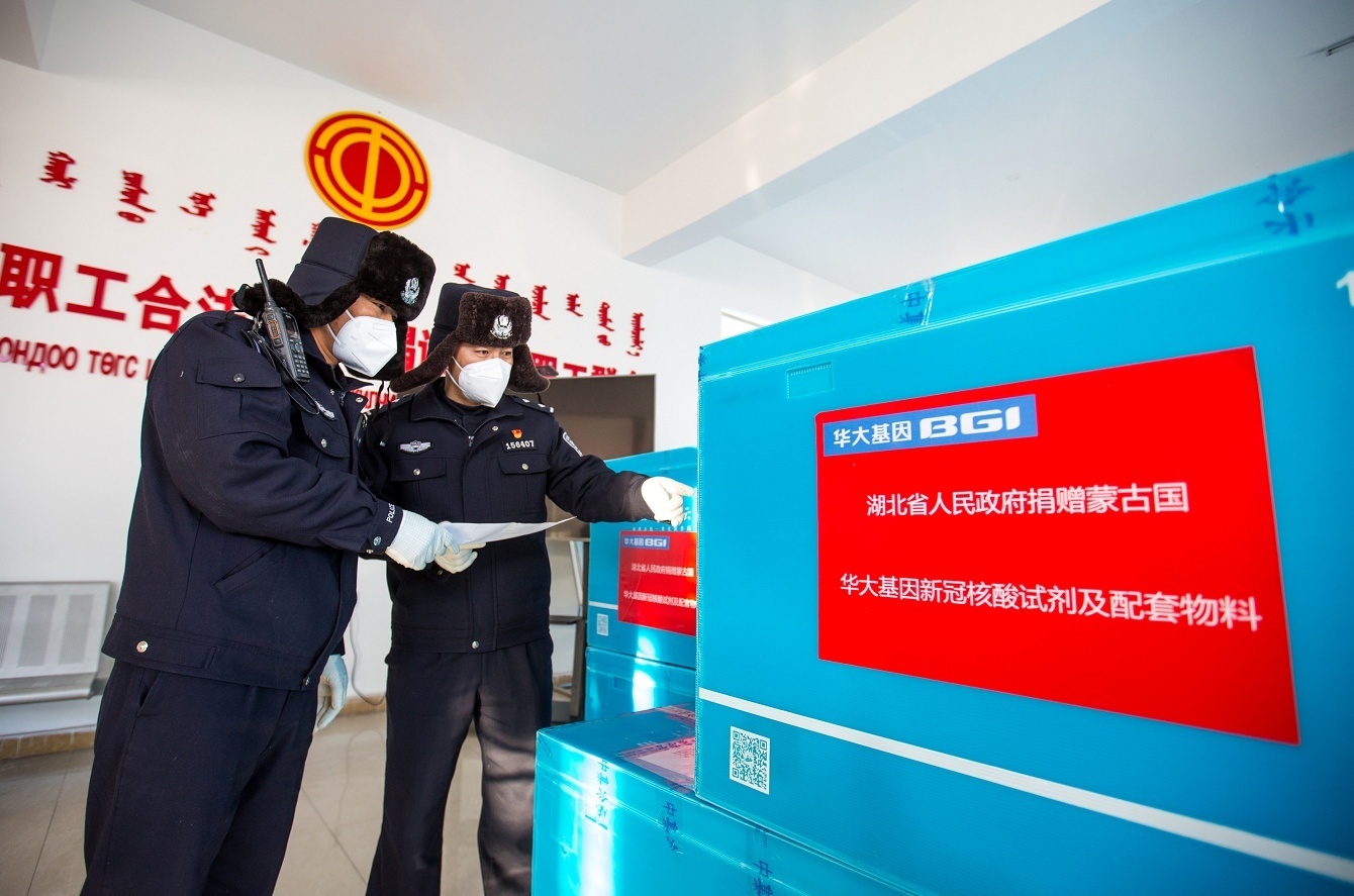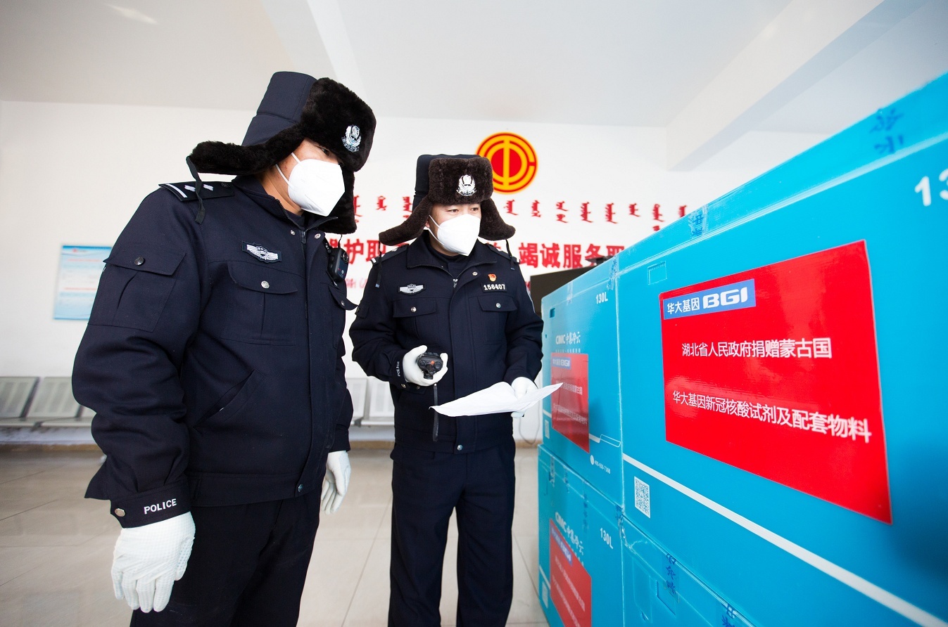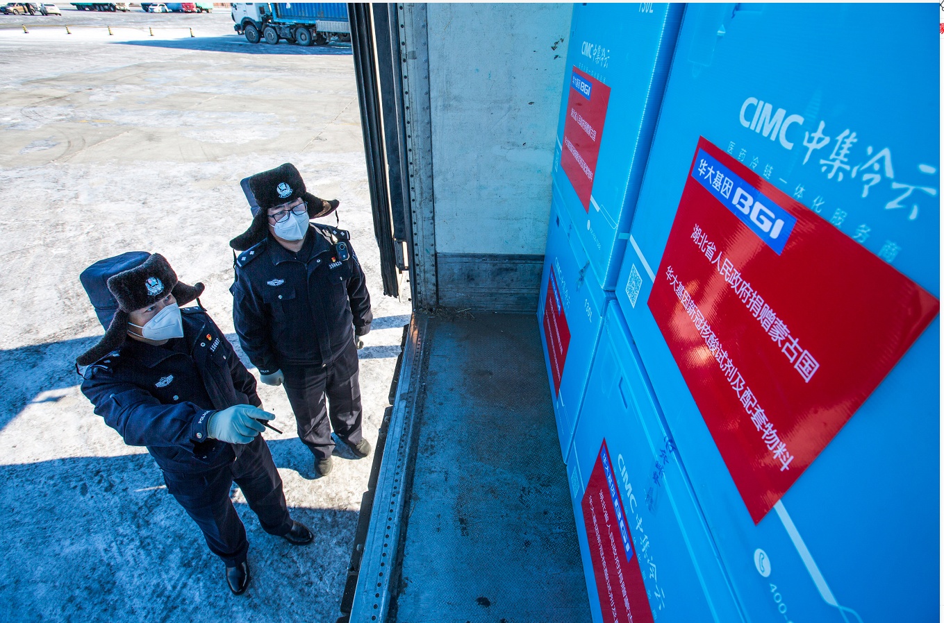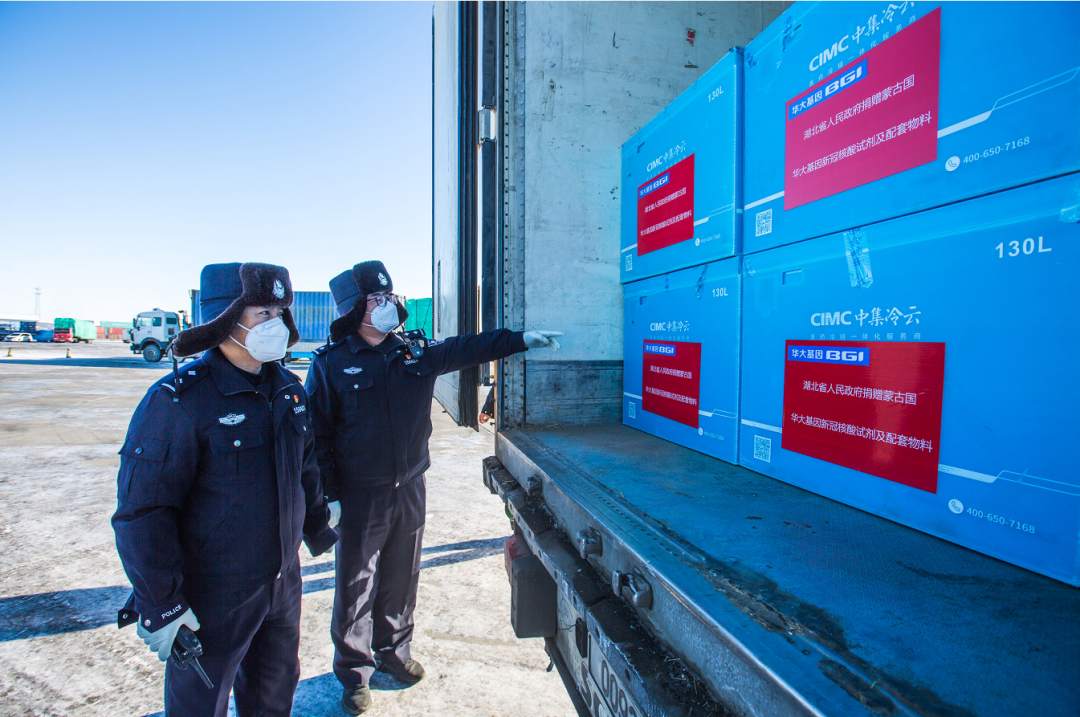 12月15日,湖北省捐赠蒙古国的防疫物资从内蒙古二连浩特公路口岸出境,内蒙古出入境边防检查总站二连出入境边防检查站开通防疫物资专用通道,采取专人专岗,优先查验的方式,第一时间为载运防疫物资车辆办理了边防检查手续,确保捐赠防疫物资以最快的速度送往蒙古国疫情防控一线。